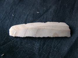 | Description / विवरण | It is a broken part of a chert blade. Both sides are retouched. On the front part it bears evidence of flaking |