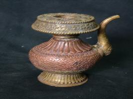| Description / विवरण | It is a water vessel, conical in shape having a round circular base and top flattened portion shown decorated in floral design. It is surmounted with inverted lotus on top. |