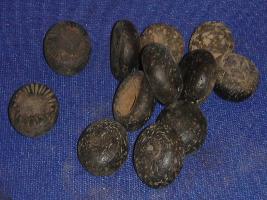 | Description / विवरण | Black betel nuts, made of ceramic, total 12 in count having plano convex shape and all are of same size. |