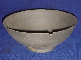 | Description / विवरण | Plain ceramic bowl, grey in colour, with round pedestal base and wide mouth. |