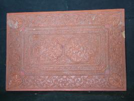 | Description / विवरण | It is a plaque with carved ornament in high relief on both sides. It is lacquered. Borders are enriched with floral scrolls. |
