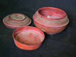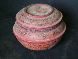 | Description / विवरण | Bowl with cover. It has projected line in the centre with lacquer work all over in floral and geometrical pattern. |