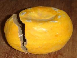 | Description / विवरण | Orange, made of clay, in orange colour. It is broken in two pieces. |