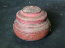 | Description / विवरण | A cylindrical box with cover. It is enamelled and has lacquer work. |
