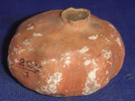| Description / विवरण | Ceramic pomegranate painted in reddish yellow colour. The colour is flaking. |
