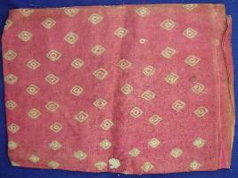 | Description / विवरण | It is a square shaped red coloured cotton, piece of sari. It is red in colour with white Bandhej prints. One side of this cloth has faded colour. |