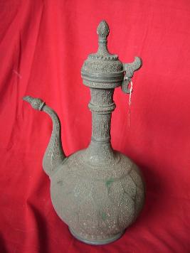 | Description / विवरण | It is a copper plated tea pot with a lid and an elegantly curved spout. It has fine engraving all over as well as on the lid. |