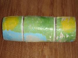 | Description / विवरण | Sugar cane, made of clay, cylindrical in shape and painted in green and yellow colours. |