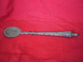 | Description / विवरण | It is a frying spoon with fine floral engravings on the handle and in the centre. |