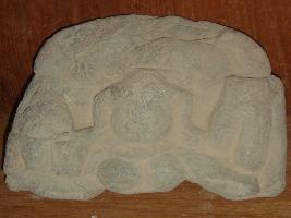 | Description / विवरण | Fragment of a sculpture, the upper part of a female deity. The body below chest is missing. The face and whole fragment is almost mutilated. |