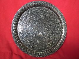 | Description / विवरण | It is a circular tray with inlay work in floral designs. The rim has geometrical pattern with large leaves. |
