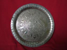 | Description / विवरण | It is a circular tray having embossed and engraved work. The rim has arch shape engraving with small dots. |