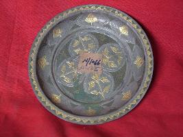 | Description / विवरण | It is a small tray with fine dotted engraving all over. In between gold plated flowers are seen. |