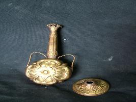 | Description / विवरण | This is a rose water sprinkler with two handles. The neck portion is like a pillar carved out of full blown flower. The main body is decorated with open flower on both sides. Base is also embossed in floral pattern. |