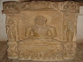| Description / विवरण | Panel of a Jaina Tirathankara, depicted Jaina Tirathankara seated on a niche on a pedestal in Dhayana mudra face is worn out, having a halo behind it, surrounded by standing jina both the sides and seated jina on the upper side. Below the pedestal of seated Jaina Tirathankara two animals are depicted. |