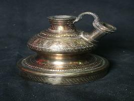 | Description / विवरण | This is a hookah with engraving done in eight to nine layers with floral lines and dots, slandering lines, criss-cross rope like designs. It has an open mouth for boiler and a spout. The base is hollow and projected towards the earth. |