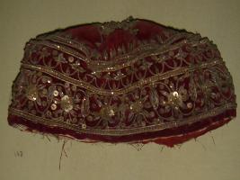 | Description / विवरण | Cap round in shape having floral designed of jari and sequence all over, the design of lower part is broader than upper. It is padded with cotton cloth from inside. |