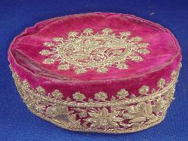 | Description / विवरण | It is a cap, round in shape it has golden salma sitara work on it. |