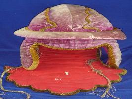 | Description / विवरण | It is a top, or headgear for some specific work a hanged part is there on the back. A attire from rock also is there. |