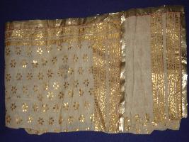 | Description / विवरण | It is a piece of dupatta small in size having black floral prints of golden colour and golden bordered strip an the border at one side. Its inner side in plain. |
