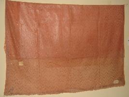 | Description / विवरण | It has a thin peach coloured cloth with a silver zig-zag dotted design block print. It has a floral block print border. |