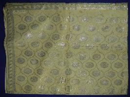 | Description / विवरण | It is a lemon yellow colour cotton cloth with silver colour floral block print. Every flower is surrounded by silver dotted design. It is a floral block print design in silver on border. |