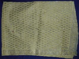 | Description / विवरण | It is a thin yellow faded cotton cloth, with silver coloured floral block print design. It has a floral block print design in silver on border. |