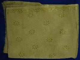 | Description / विवरण | Rectangular sample of handkerchief with golden works all over it. |