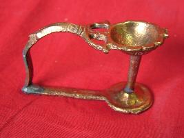 | Description / विवरण | It is an Artika lamp for waving before the idol. Its handle is curved with bow pattern. |