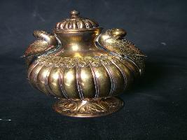 | Description / विवरण | It is a vase with cover having vertical lines engraved over it. Two parrots are engraved on the either sides. |