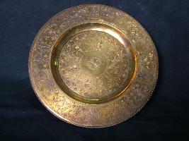 | Description / विवरण | It is a brass salver finely engraved. The base is outwardly projected. It has engraved mythological figures and floral designs. |