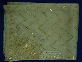 | Description / विवरण | Rectangular sample of a piece of hankerchief, pale yellow in colour with golden work all over it. |