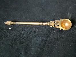 | Description / विवरण | It is a temple spoon used by the Hindu religious devotee for Holy spiritual water. Spoon is deep circular in shape with little perforated engraved design. |