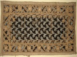 | Description / विवरण | It is a rectangular piece of cloth with embroidered floral design in middle in blue colours. The birds are made in sequence. The border has floral designs in golden and blue coloured. |