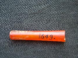 | Description / विवरण | It is a barrel shaped broken carnelian bead. A hole is across it. |