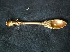 | Description / विवरण | It is an oval shape spoon. Krishna and Seshnaga are at the top with two parrots at the bottom of a handle. Little engraved work is done on the sculptures of Krishna and Parrot. |