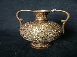 | Description / विवरण | It is a water vessel with two handles and embossed floral ornaments all over. |