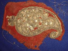 | Description / विवरण | Sample of designs on cloth Kalgi design of metal and iron wire on it. |