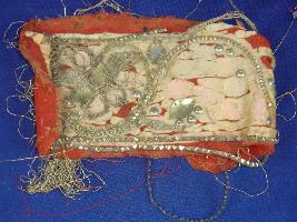 | Description / विवरण | Sample of designs on cloth having floral designs made of jari. But most of the design is deteriorated and the cloth torn out. |