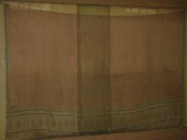 | Description / विवरण | Cotton sari of kacchi bhuti of peach colour with flower printed in a row all over. And a border of light green colour. |