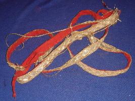 | Description / विवरण | Red coloured cotton strip which has a golden and silver work done on upper side. It was used as turban accessories by royals. |