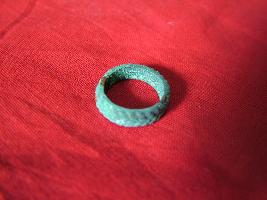 | Description / विवरण | This is a foot ring embossed with two thick oblique patterns on the entire body portion. |