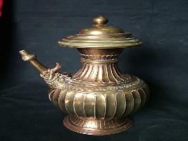 | Description / विवरण | It is an ewer with wide mouth and bowl with vertical grooves. Spout is shaped like an elephant head with a long tube projecting from it. Engraved work is done on neck and upper part of mouth. |