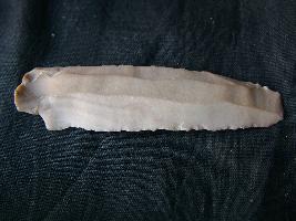 | Description / विवरण | This is a broken part of chert blade. Both sides are retouched It bears evidence of flaking on the front part. It has bulb of percussion |