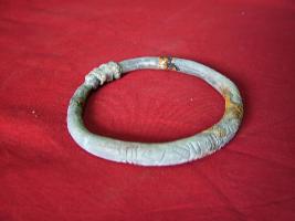 | Description / विवरण | This is a bracelet having engraved triangular design with some oblique lines on the body portion and its upper part is embossed with vertical line. |