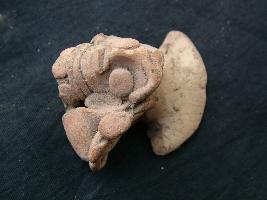 | Description / विवरण | It is a head part of a ganesh. It is made in applique technique. It has a notched nose. It is broken partly . |