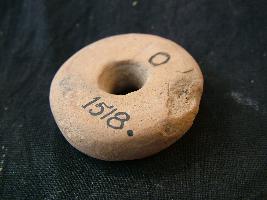 | Description / विवरण | It is a disc shape, flat sided bead with a perforation. It is painted in brown colour |