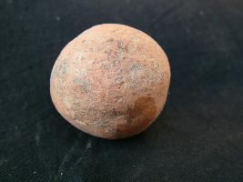 | Description / विवरण | It is a teracotta sling ball. It is well burnt. There is a trace of red slip on its surface |