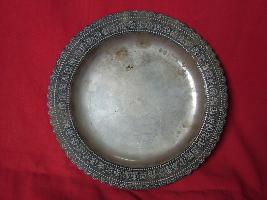 | Description / विवरण | It is a salver with elegant curves on the rim. It has plain centre and the rim portion has fine inlay work in symmetrical pattern. |