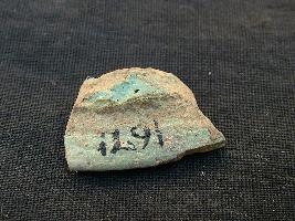 | Description / विवरण | It is a faience piece with greenish blue stone. It may be a part of a pot |